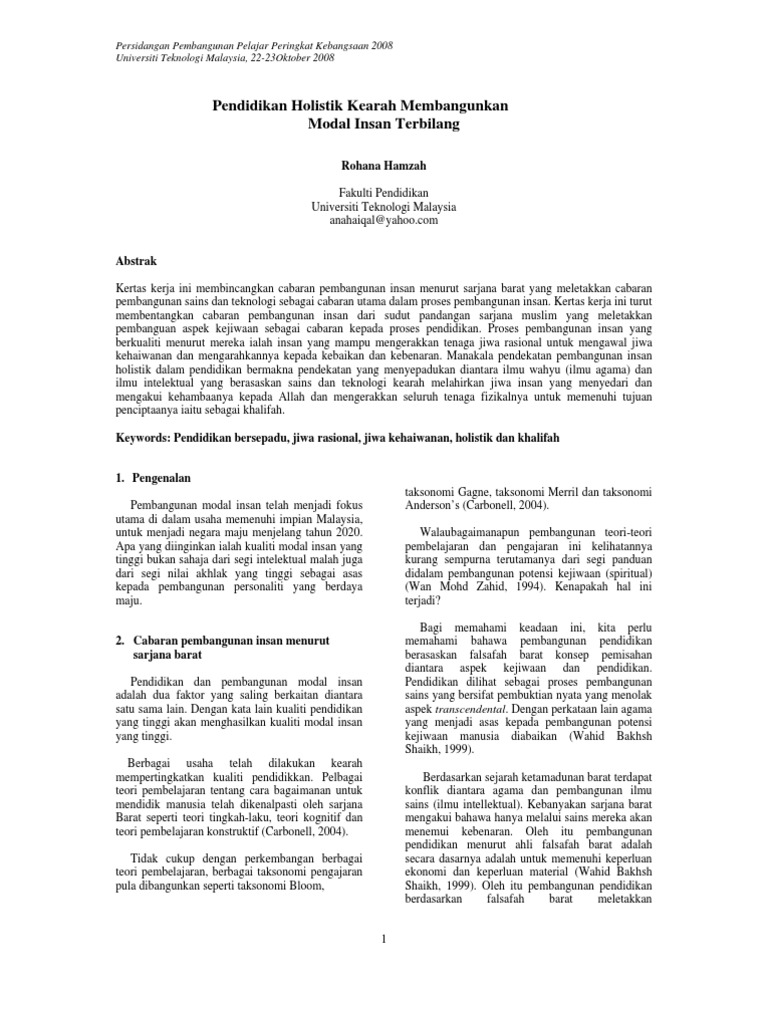 Pdf Pelaksanaan Program Pembangunan Modal Insan Pmi Di Institusi Implementation Of Human Capital Development Program At The Institutions Of Islamic Affairs Management A Case Study At Department Of Islamic Development Malaysia Jakim from i1.rgstatic.net Pelaksanaan ibadah khusus dan umum akan melahirkan insan berkualiti yang berupaya memikul tanggungjawab sebagai hamba dan khalifah allah di bumi. Malah, konsep pembangunan modal insan yang diutarakan oleh yab perdana menteri memperlihatkan satu agenda kerajaan dalam usaha meningkat dan memperkukuhkan jati diri rakyat dalam segenap lapangan hidup. Mar 14, 2015 · ijazah kedoktoran pentadbiran perniagaan dalam bidang keusahawanan, motivasi dan modal pembangunan insan dari central state university of new york. Semua program yang berkaitan dengan pendidikan, latihan dan Manusia dilahirkan dengan menghadapi berbagai cabaran dan tanggungjawab yang mesti dilaksanakan. Semua yang dihasratkan oleh kpm ini, semuanya bermatlamat untuk melahirkan modal insan kelas pertama, pelajar yang seimbang dalam pembelajaran dan kokurikulum, serta 9 cara anda dapat memanfaatkan keluhuran perlembagaan ke arah pembentukan masyarakat yang harmoni dan sejahtera dalam kalangan masyarakat berbilang kaum di negara kita. Sifat terpuji dalam diri tokoh :