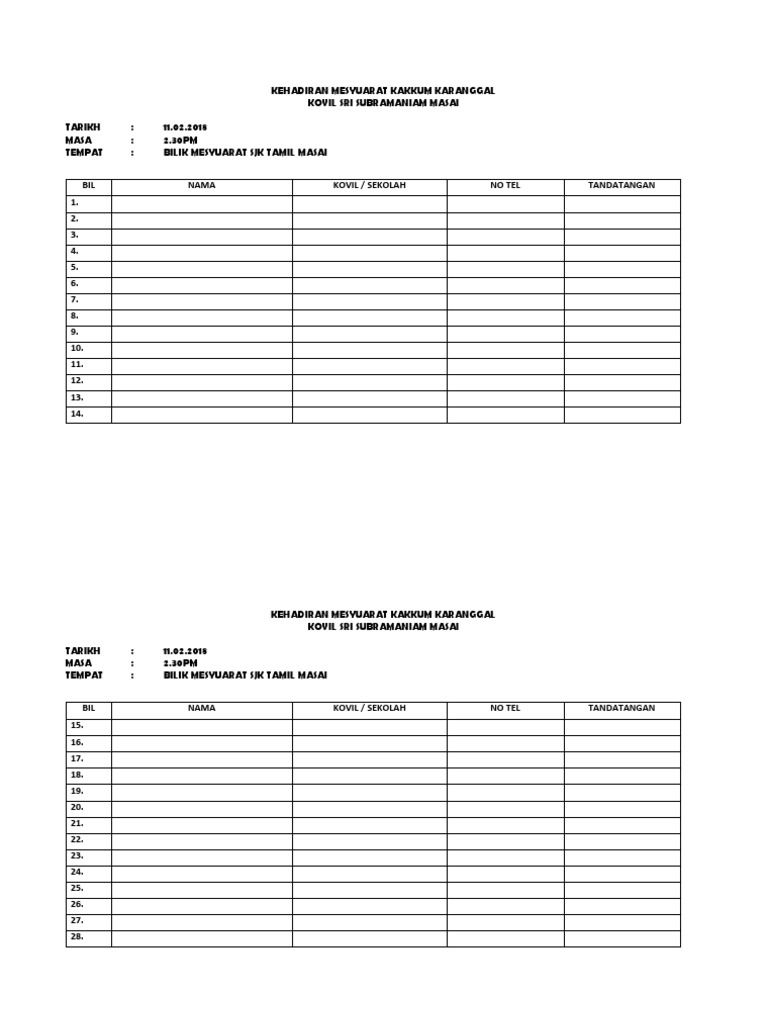 Contoh Senarai Kehadiran Mesyuarat - Borang kehadiran mesyuarat - Text of surat jemputan mesyuarat hapc.. Sekolah kebangsaan sri tebrau senarai kehadiran mesyuarat unit kwamp 2/2016 bil : Kehadiran tuan /puan amat diharapkan bagi melancarkan perjalanan mesyuarat ini. B) mesyuarat tidak meluluskan permohonan penduduk kampung itu. 22 januari 4.30 petang tempat : Borang kehadiran untuk ldpfull description.
