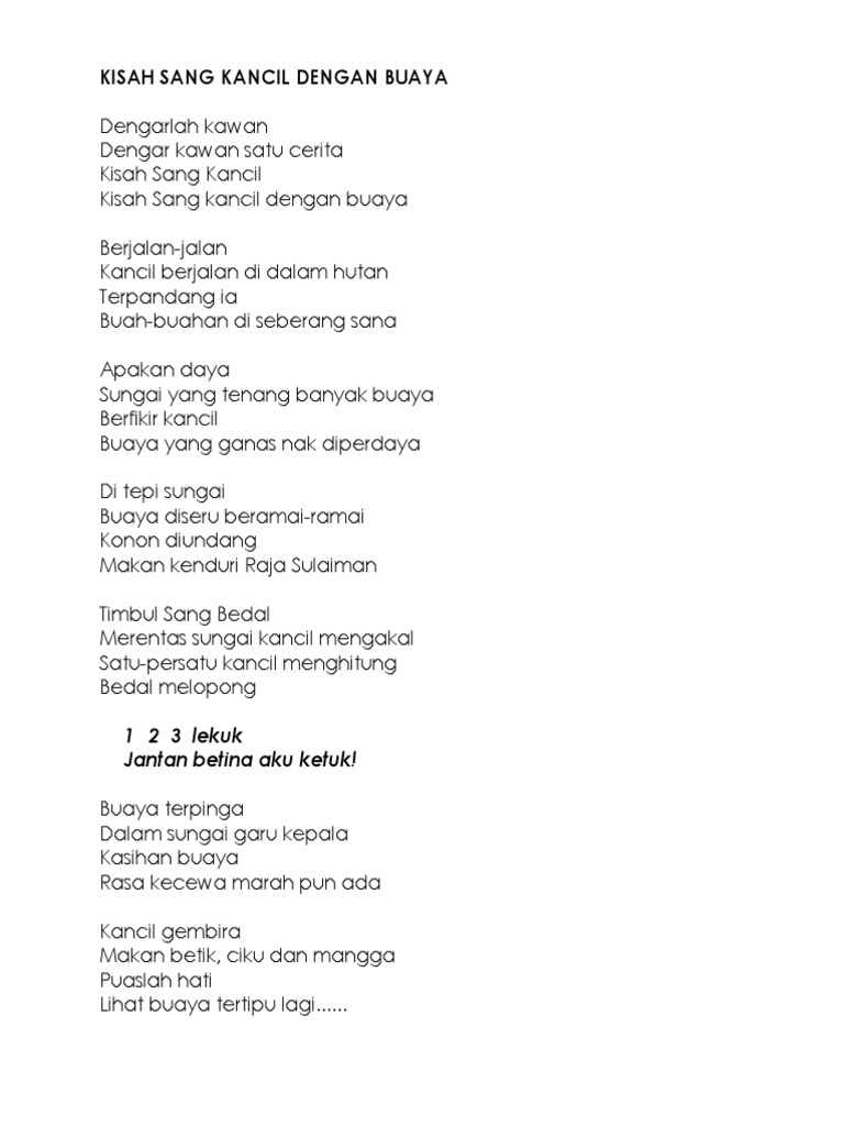 Read 2 reviews from the world's largest community for readers. There were always lots of leaves. Tentang sang kancil & buaya. Sang kancil dengan buaya pencerita: Sebaliknya harimau yang mengejar kancil dan bersilat dengannya telah terjatuh ke sungai.